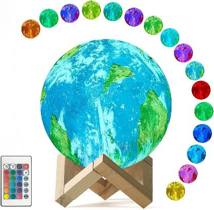 A 3D-printed moon lamp with touch and remote controls, offering rechargeable, color-changing LED illumination. Made from ABS, PVC, and wood...